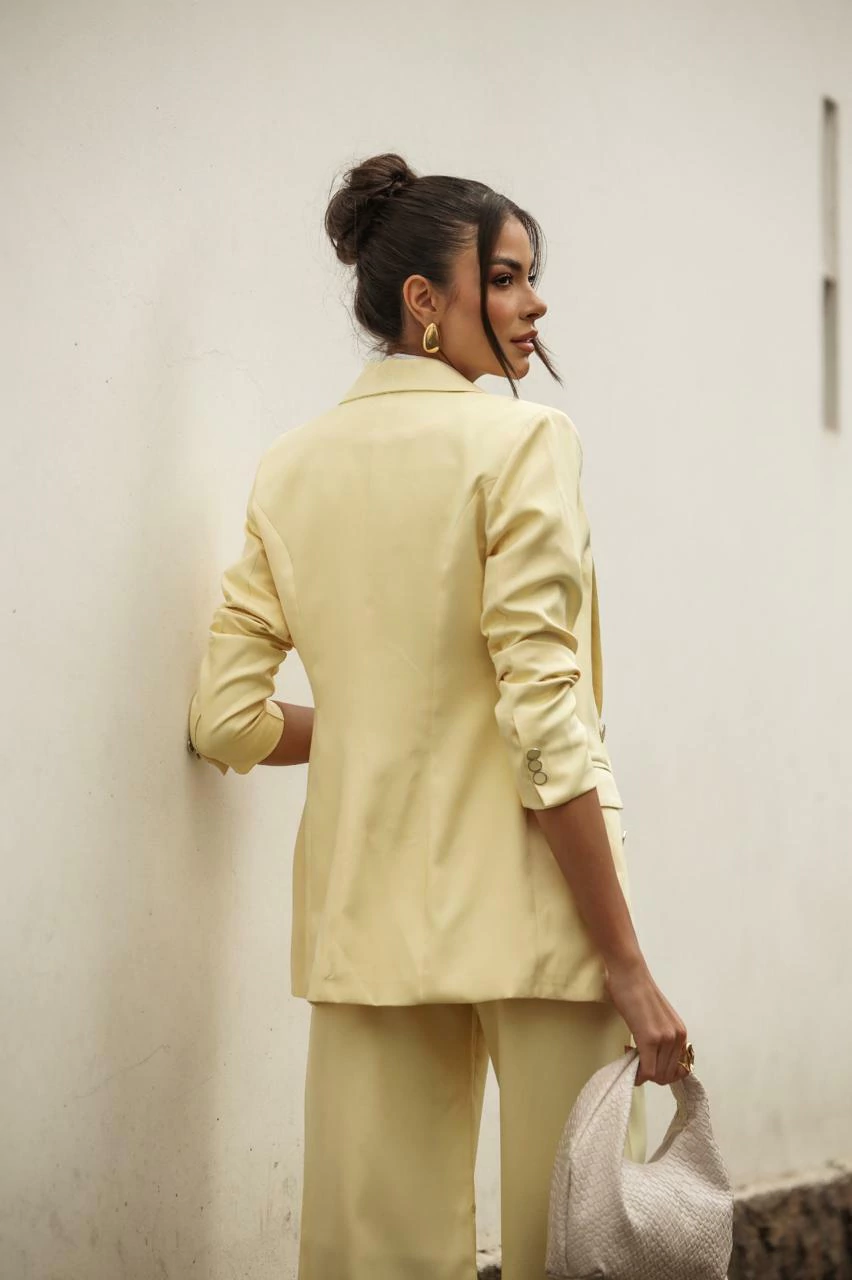 Este blazer amarelo é a escolha certa para quem deseja destacar-se com um toque de cor e sofisticação, seja no ambiente de trabalho ou em ocasiões especiais. Garanta já o seu e experimente a combinação perfeita entre estilo e exclusividade!